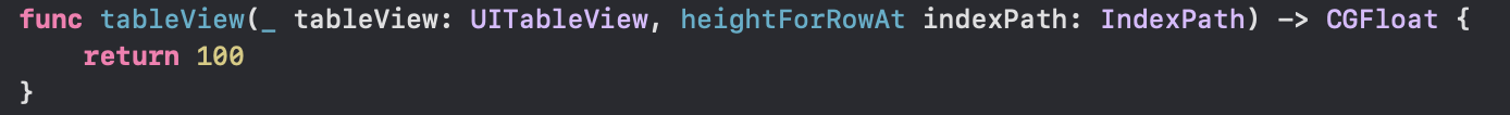 - heightForRowAt : 셀의 높이(100으로 선언)
