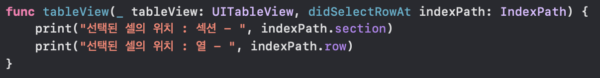 - numberOfRowsInSection : TableView의 아이템 개수를 return