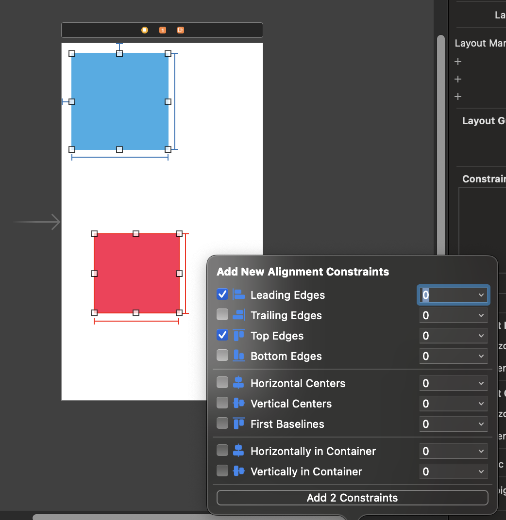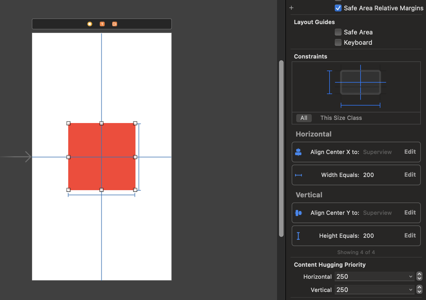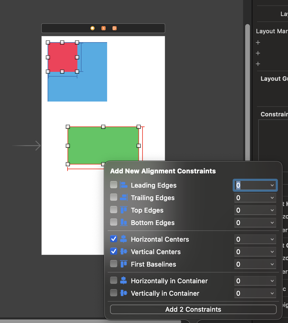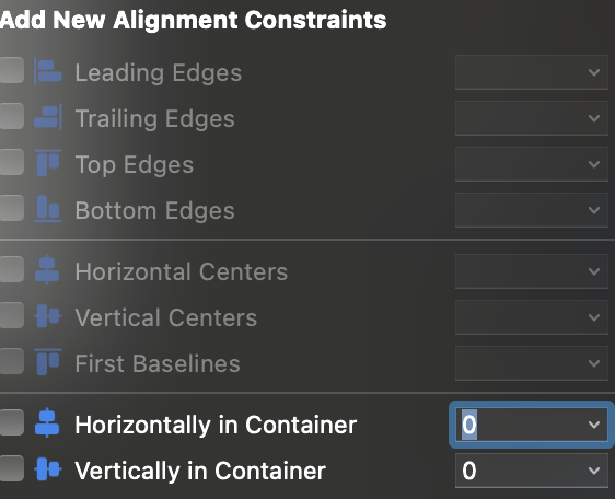 - 한 개의 Object만 있을 때는 Horizontally/Vertically만 사용 가능 → 가운데 정렬